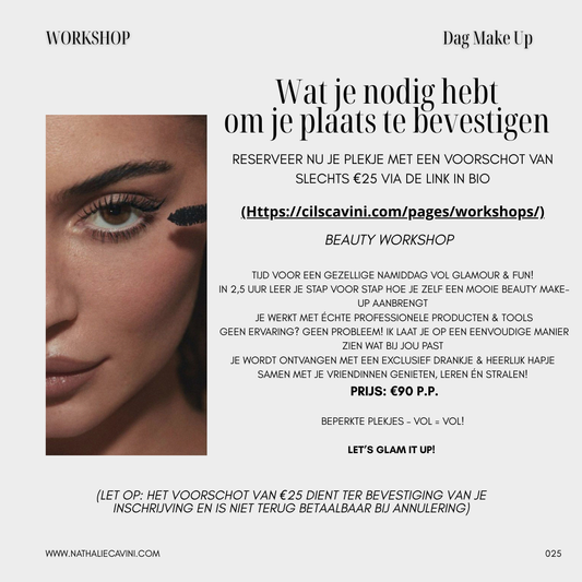 {15 November} Workshop Dag Make up €90 Reserveer nu je plekje met een voorschot bvan €25